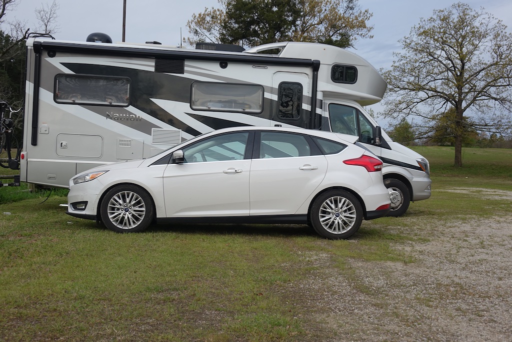 Our new pearl white 2016 Ford Focus matches our Navion quite nicely.