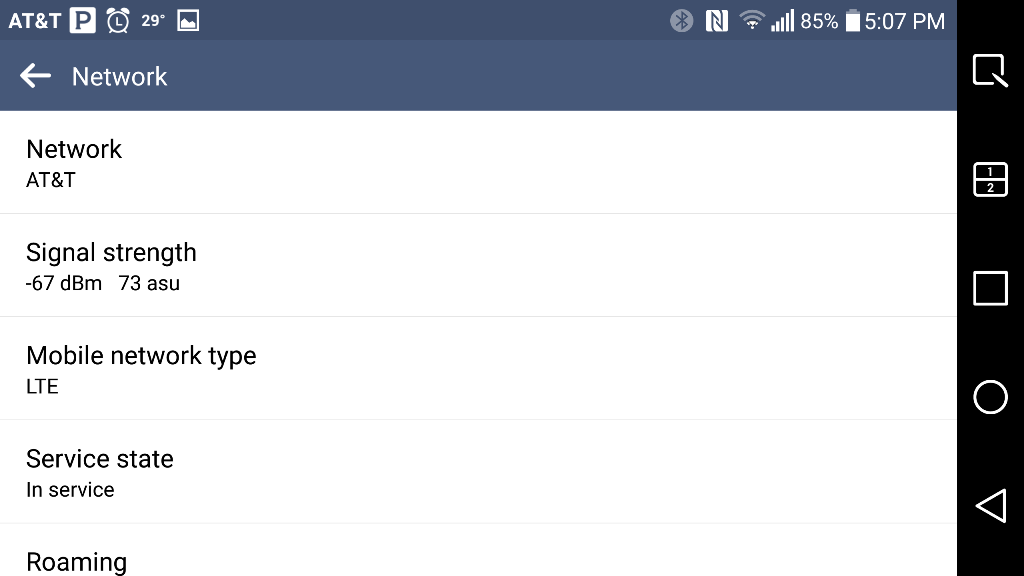 dBm is a numerical representation of signal strength, but it's not measured "normally". dBm values are always negative, and the less negative they are the better your signal strength is. But what makes a "good" versus "bad" signal strength is different, depending on if your phone is receiving 4G LTE signals or not. Again -- there is a lot of information out there, but to keep things simple, I measured each phone with LTE turned on and turned off. I used the following guidelines to ball-park what a "good" signal might mean.