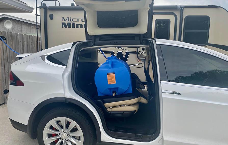 When you want to stay at your boondocking site just a little longer, some extra water makes it possible. Coupled with the Milwaukee transfer pump, we can quickly transfer the water to our on-board water tank and spend more time exploring!