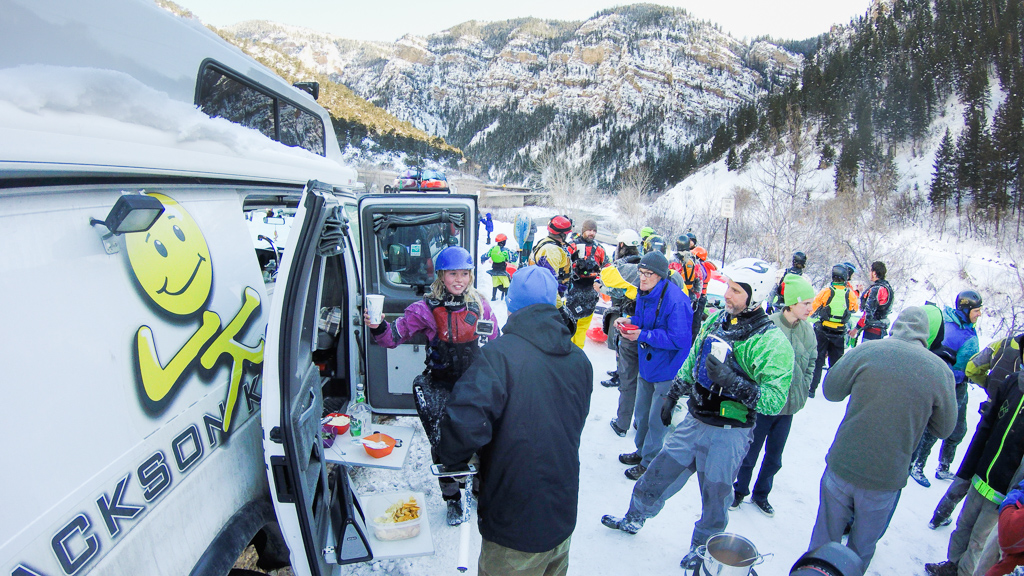 Each New Year's Day paddlers from across Colorado and beyond converge on the banks of the Colorado River, near Glenwood Springs, CO to ring in the new year doing what they love most - kayaking. This year over forty people from four states showed up to brave the single digit temperatures.