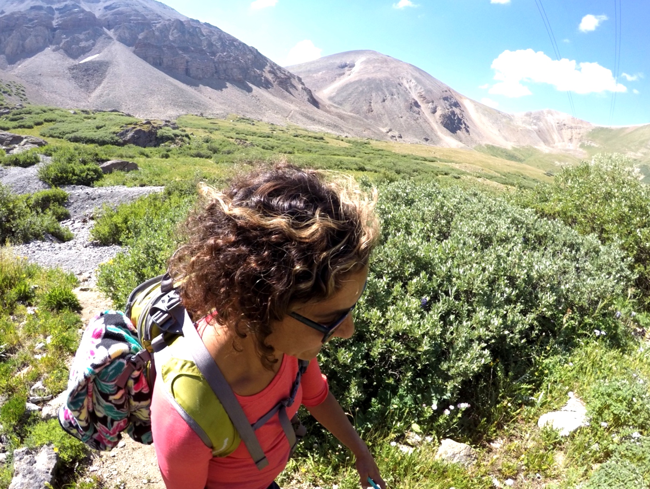 Woman hiking through brush with hills in the background.Finishing up a hike to Mt. Sherman, a Colorado 14er. Taken before altitude sickness set in. Photo credit: Mike Beltz