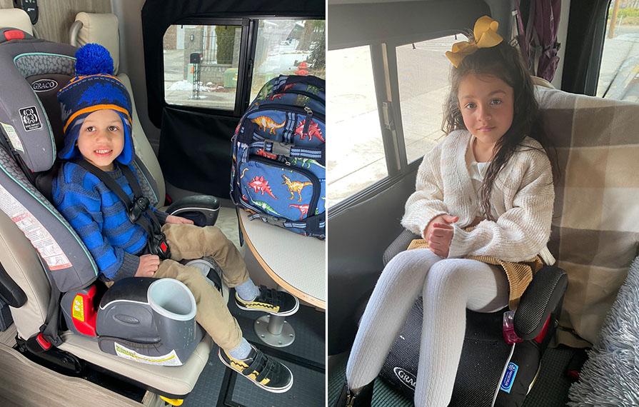 Of course, if you have a towable RV, you will simply want to use the vehicle you are towing your travel trailer with to buckle in kids of all ages since you should never leave people or pets in a moving travel trailer!
