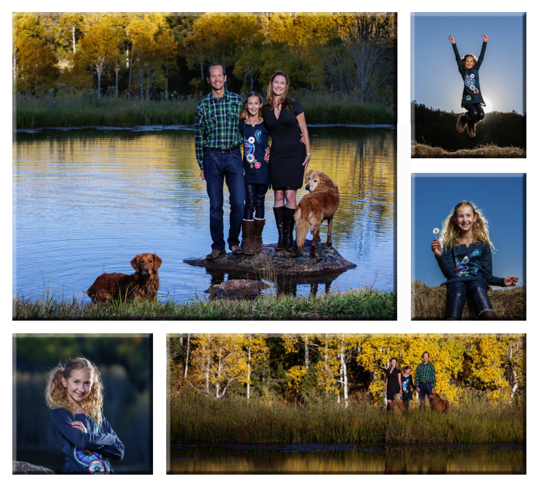 Collage of family photos taken at a lake in the fall.By grouping images together, you can create a beautiful focal piece over a fireplace, sofa, etc.