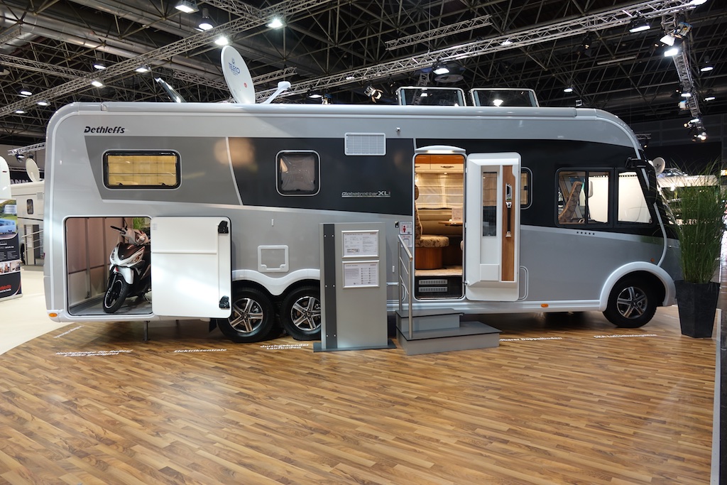 Another interesting observation about the motorhomes was the prevalence of large, full-width storage in the rear generally under raised interior beds. Units were frequently displayed showing bikes and motorized scooters in the back. And there's good reason for this -- Europeans generally do not pull tow cars, so they look to other options to extend their local travel mobility.