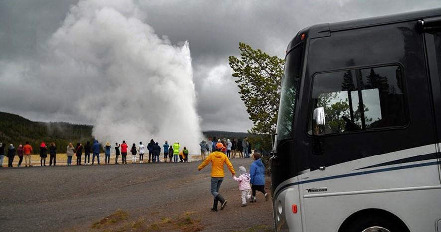 Winnebago family off to see Old Faithful in Yellowstone National Park. Photo credit: Eli & Kelly Pyke.