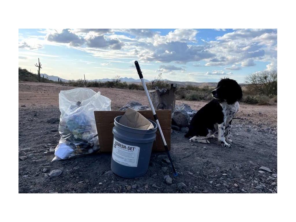 Bring along a reusable tote in your hiking pack or use a compostable dog waste bag that you’ve already brought along for your pup and collect trash on the way as well.