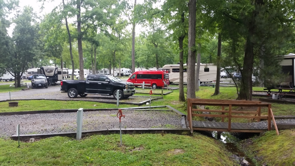 Red Winnebago Travato among other RVs at a campground.Roxanne among some of her peers, outside Ashland, Va.