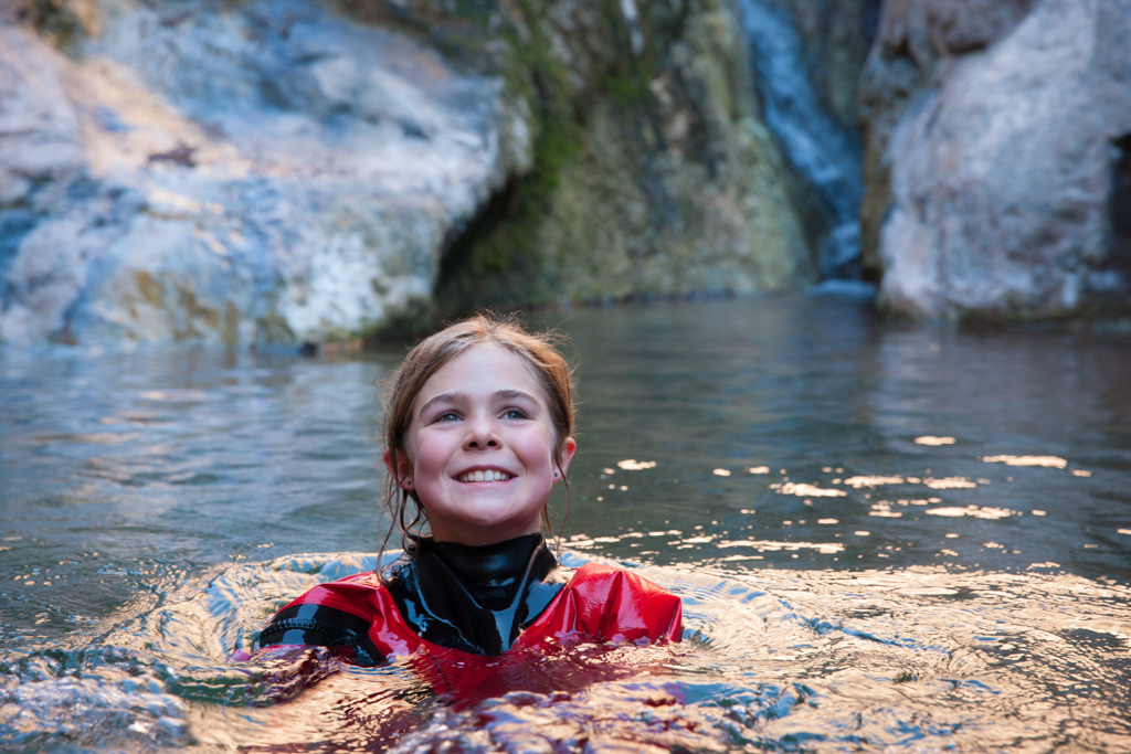 At home in the water. Abby is equally comfortable scrambling over boulders.