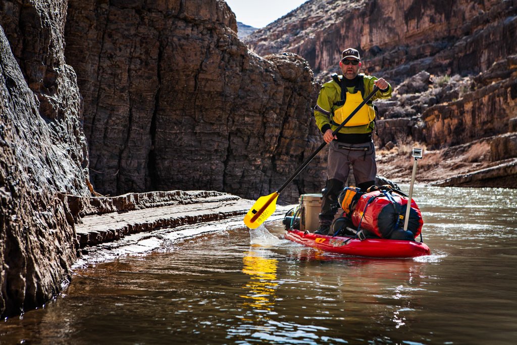 Peter paddleboards on the San Juan River near Mexican Hat, UT.