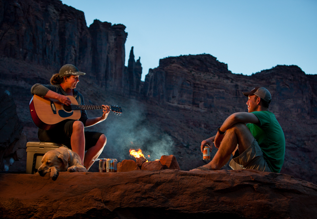 A serenade at day's end as Kathy Holcombe tests the natural canyon acoustics on the Colorado River near Castle Valley, UT.