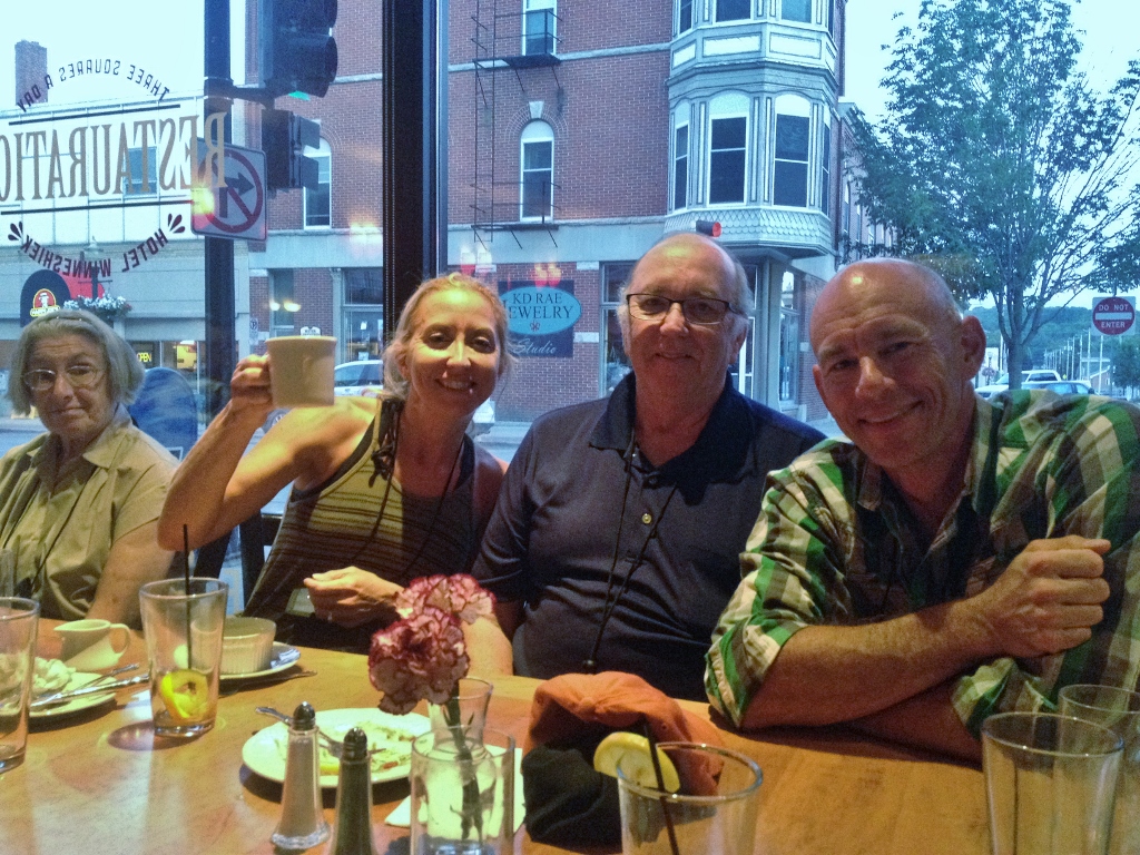 A group dinner during the Driftless Adventure. That's my dad between me and James!
