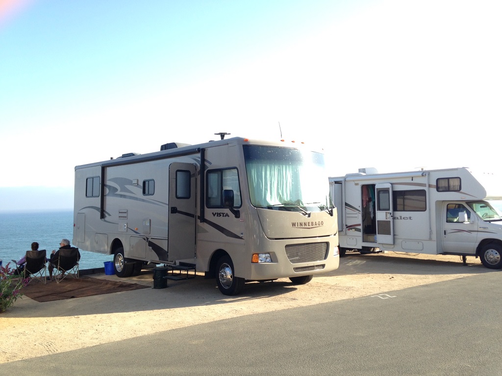 A couple more Winnebagos right behind us, where some life-is-good folks were settling in with a glass of wine above the waves.