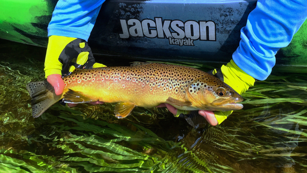The Travato's first streamside stop at White River Arkansas yields a hefty brown trout. (Size of catch and mileage may vary!)