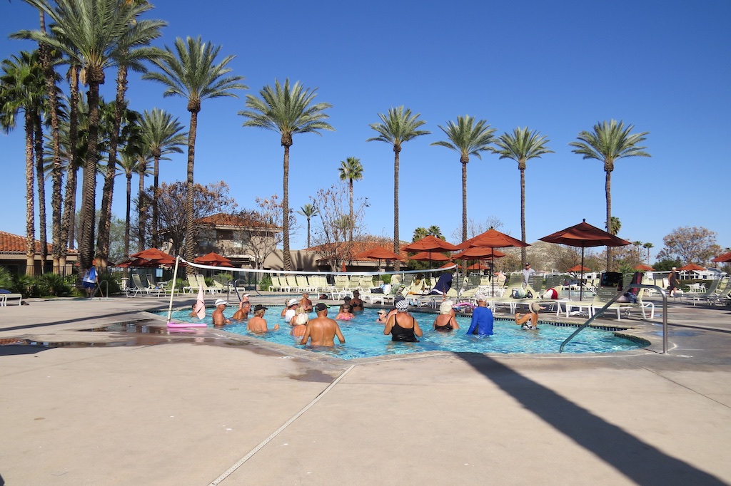 Snowbirds flock at Golden Village Palms in Hemet, California.