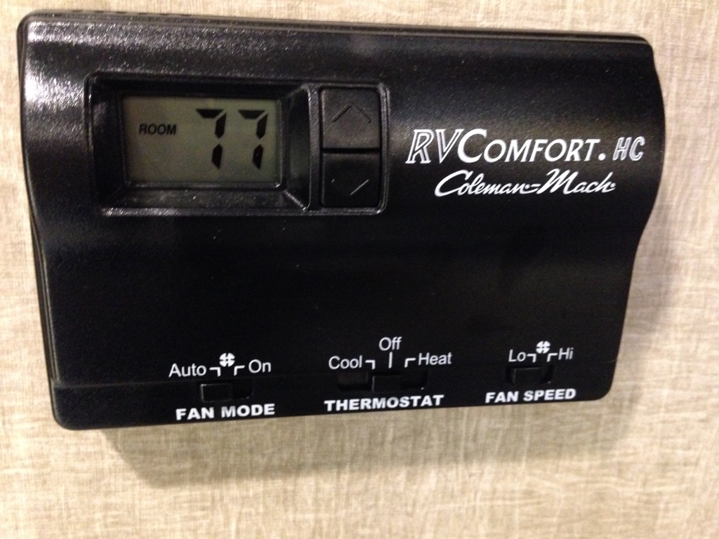#9 You can actually adjust the temperature with a thermostat, just like in a house. In our former RV, we had only one AC unit with two settings: hi or lo.