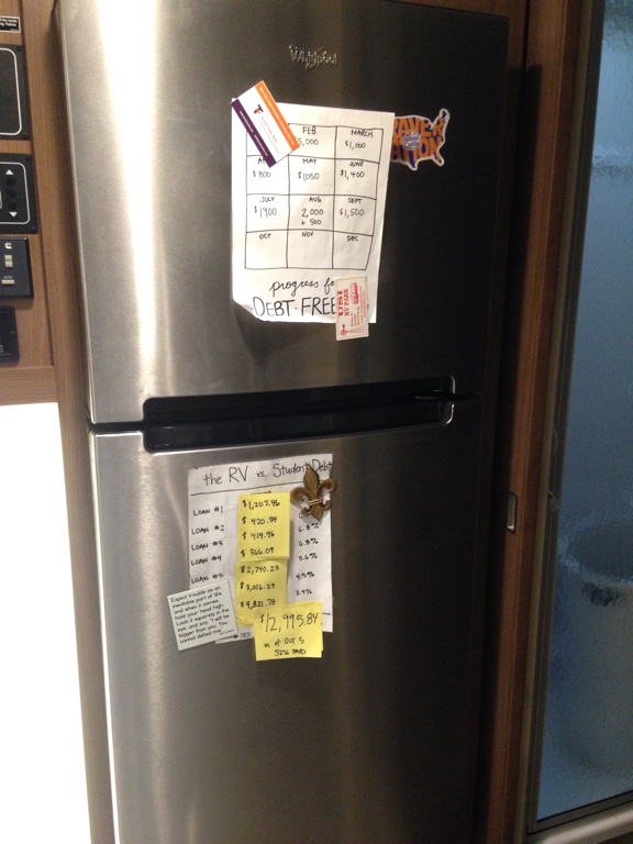 #10 There is a commercial-sized fridge in here. Which means it can fit an entire pizza box and that's all I care about. Plus, it doesn't run off propane, which means when I park on a hill, the fridge won't blow up (Don't worry, I haven't done that before... okay, I totally have. Don't judge.)
