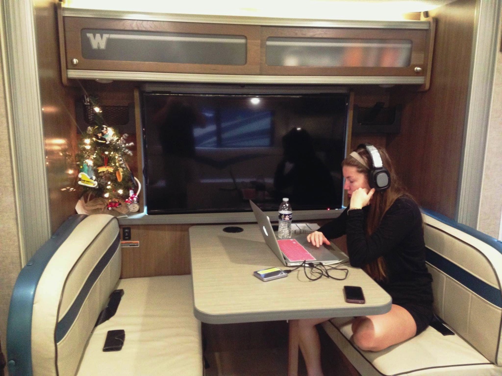 #12 Both the wife and I can have separate work stations. (She gets the dinette. I claimed the cool little table between the two front seats.)