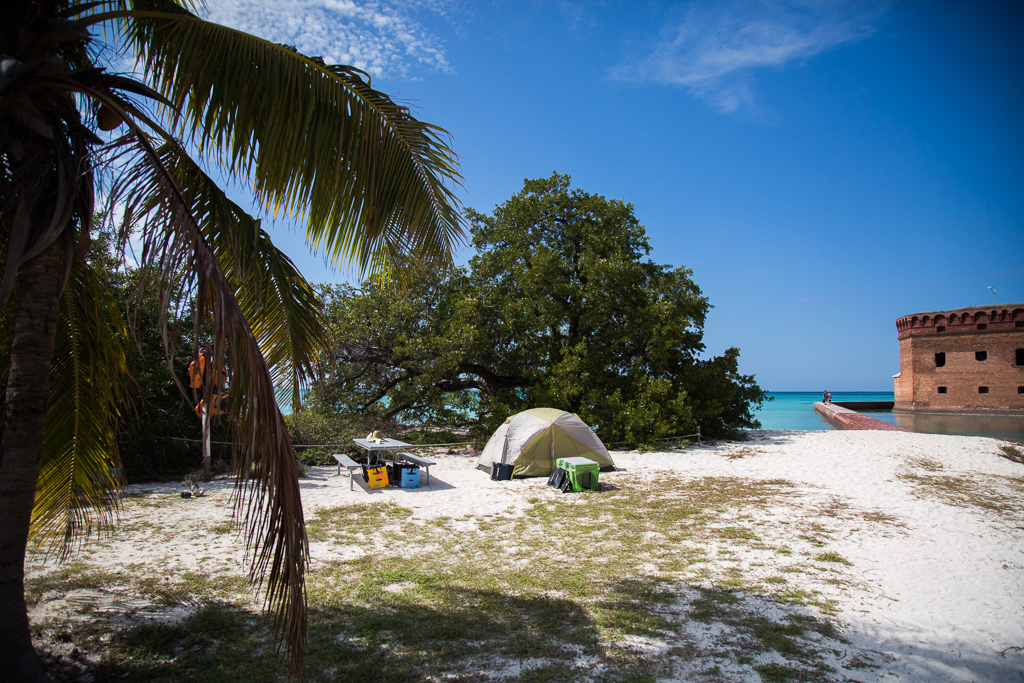 As much as we loved playing tourists in Key West, we were still hungry for adventure, and where better to start our quest than 70 miles out at sea. Dry Tortugas National Park is the westernmost group of seven islands in the Keys and is accessible by private boat, sea plane or by the Yankee Freedom III ferry that shuttles around 170 tourists daily to and from Garden Key, the epicenter of the park. With some quick research, we learned of a campground on Garden Key which rekindled my hope of an island oasis in the Keys.