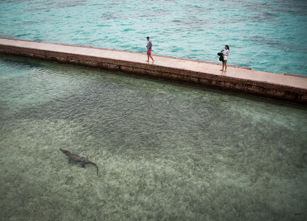Carlos the alligator keeps a watchful eye from the moat at Fort Jefferson.