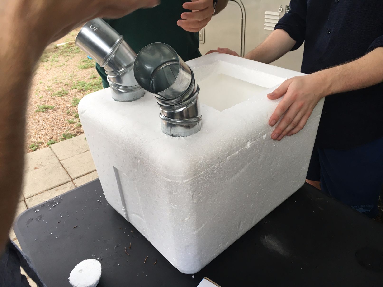 Judging by her response, she was trying to not-so-subtly hint that using generators inside of Big Bend National Park is strictly prohibited. I was proud to tell her that we would not need to turn on our generator, not because of our fancy solar set up, but because I tore up my in-laws styrofoam cooler and turned it into a homemade air conditioner.