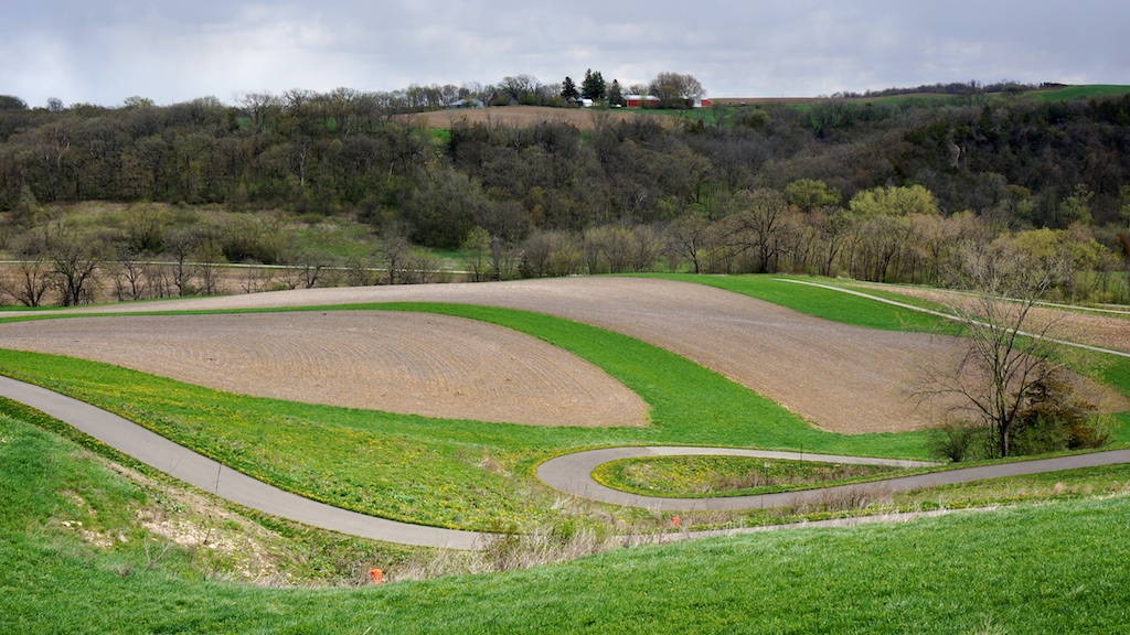 Bike path curving along the hillside and through the farm fields.From town to country, a great 12 mile bike loop around Decorah is easy and scenic.