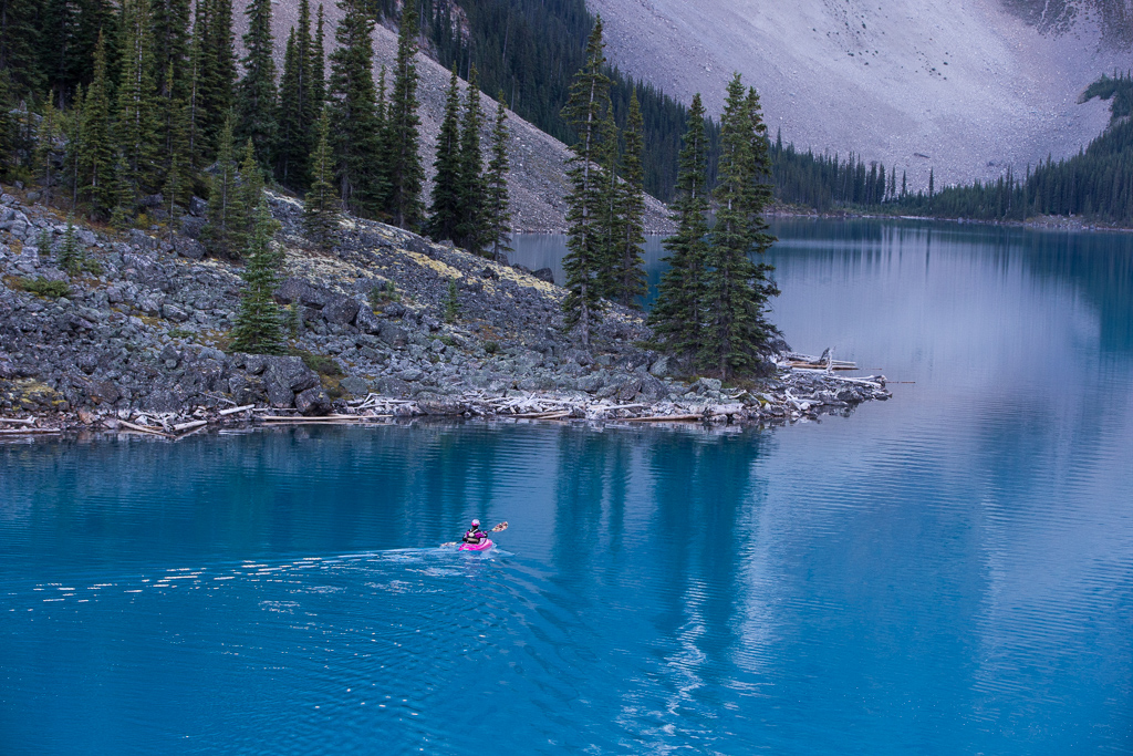 While the hue of the water was reminiscent of the Caribbean Sea, the arctic temperature of the water on our early morning paddle across Moraine Lake perfectly matched the landscape - breathtaking!