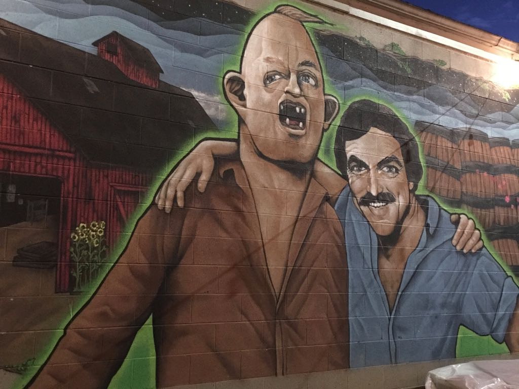Mural on wall of Sloth from the Goonies and Tom Selleck.If you share in my fond memories of film and TV from the 80s, you'll know the two chaps featured in this epic patio mural at Burial. Sloth and Tom are featured in memorabilia throughout the brewery.