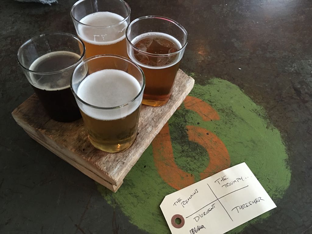 Four beer sampler at Burial Beer Co.Definitely recommend going with a sampler at Burial Beer Co before settling into a glass of your favorite.