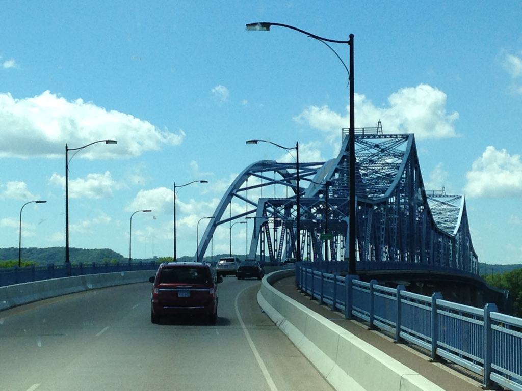 From our campsite, we had the option of walking across the Cass Street Bridge (known locally as "Big Blue") into the heart of downtown La Crosse, Wisconsin. Pretty majestic span.