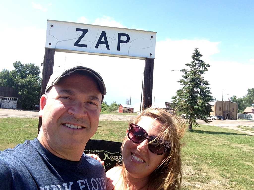 The Zip to Zap was a bit of a zero. And it's now a humble and dwindling hiccup along the prairie (though there is an RV park there). But if there's a better name for a town, I haven't seen it. So Amy and I zipped to Zap 46 years after the broad invitation.