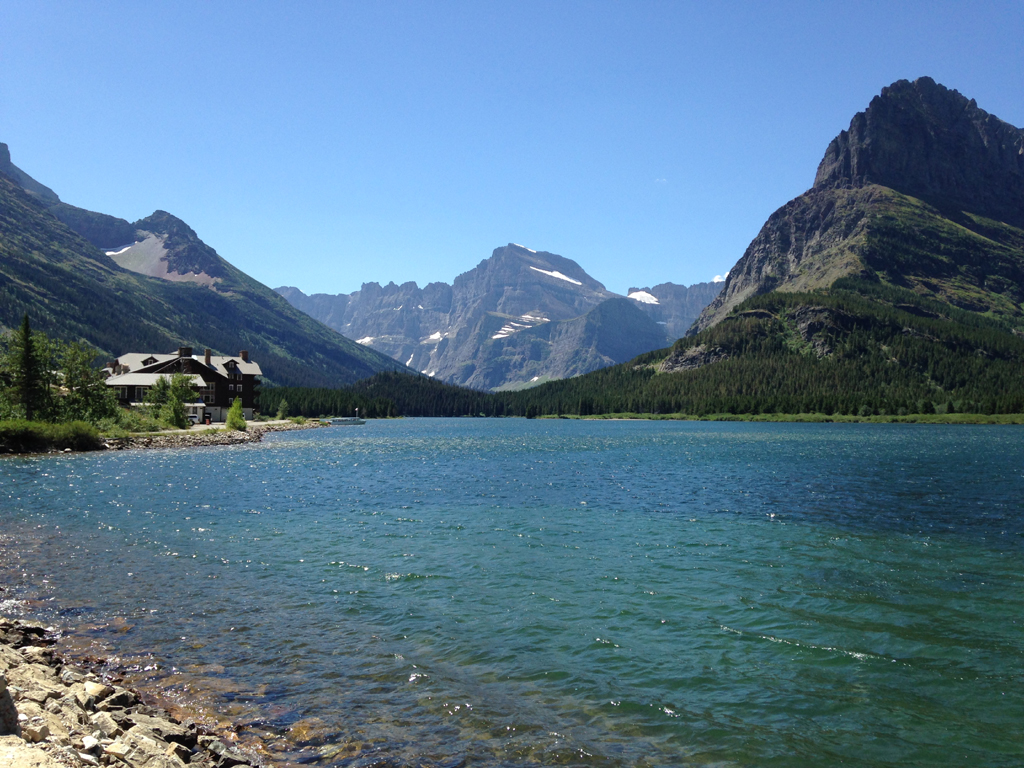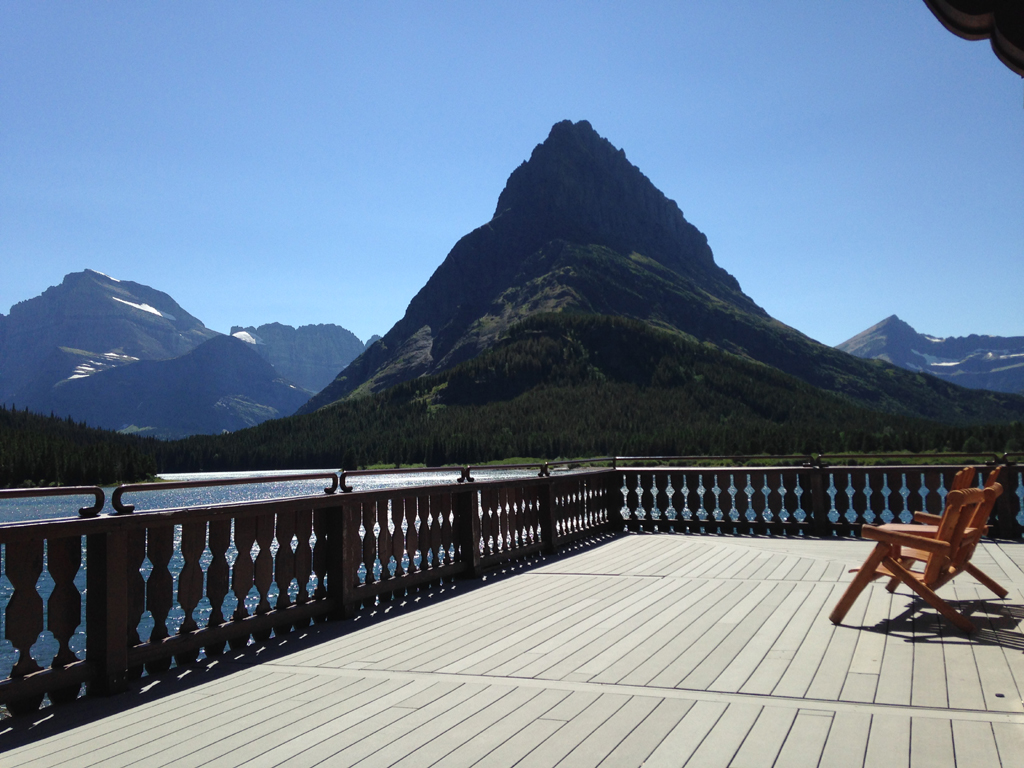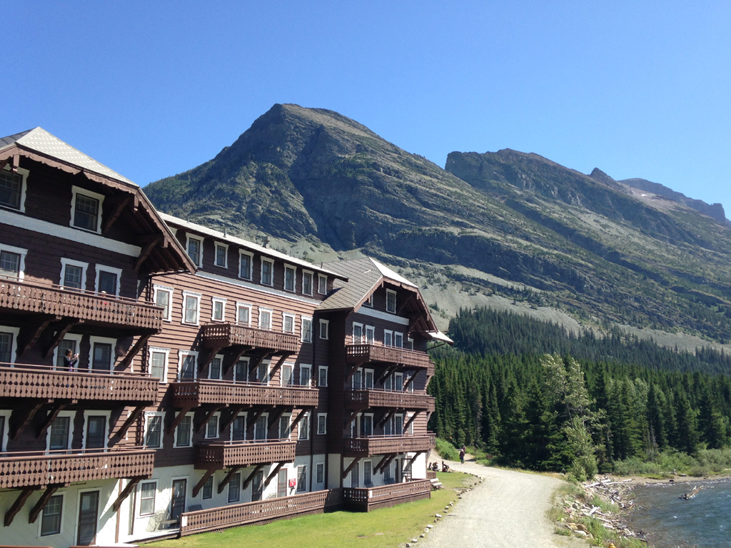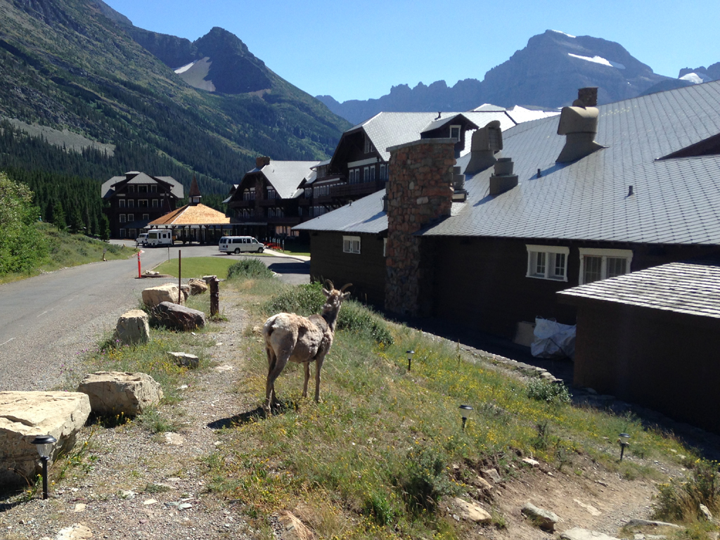And on the fourth day, we rested. Sort of. We started up the Brave and set out on yet another jaw-dropping afternoon drive. We rumbled 21 miles from our campground to Many Glacier in the park's northeast corner, where there is a magical confluence of wonders. In about a square half-mile you have beautiful mountain vistas, an active glacier, a sparkling lake, a waterfall, wildlife, and the aging-but-impressive Many Glacier Hotel.