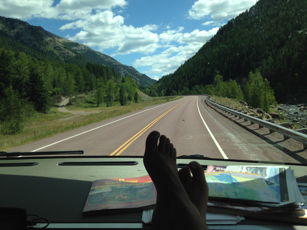 But one of my favorite aspects of an RV journey is the notion that you're in complete control--your own pace, your own preferences, your own choice of company. So Amy and I--just the two of us and our favorite tunes--set out from a breathtaking KOA Kampground in West Glacier in this "red bus" instead.
