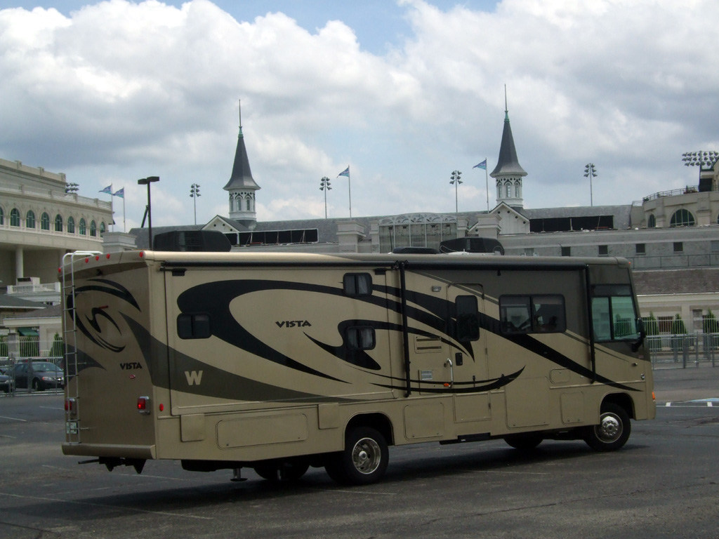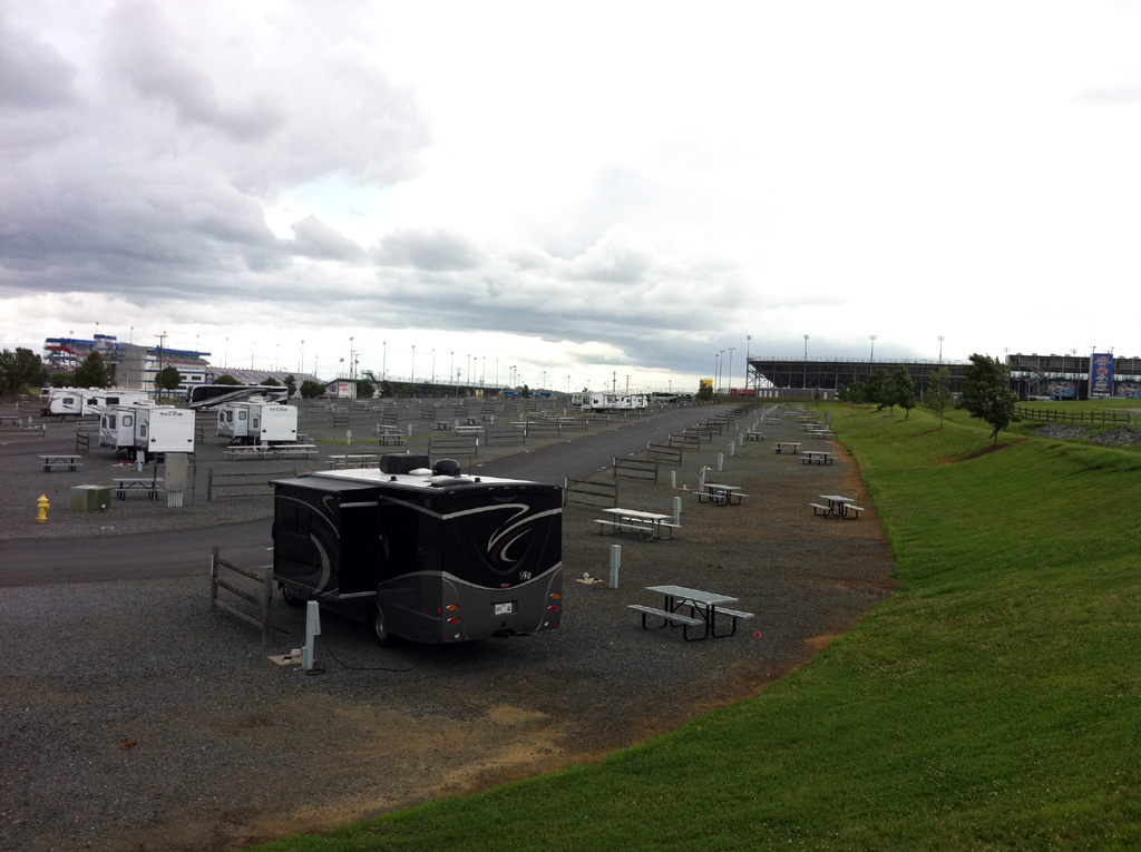 That lonely-looking RV in the photo is the Winnebago Via that we drove during the summer of 2013. It happens to be parked at a locale that is not often all that lonely, a place called Tom Johnson Camping Center Racing Resort in Concord, North Carolina. Say all you want about Daytona and Indianapolis. I would argue that this North Carolina locale is THE epicenter of four-wheeled speed in America.