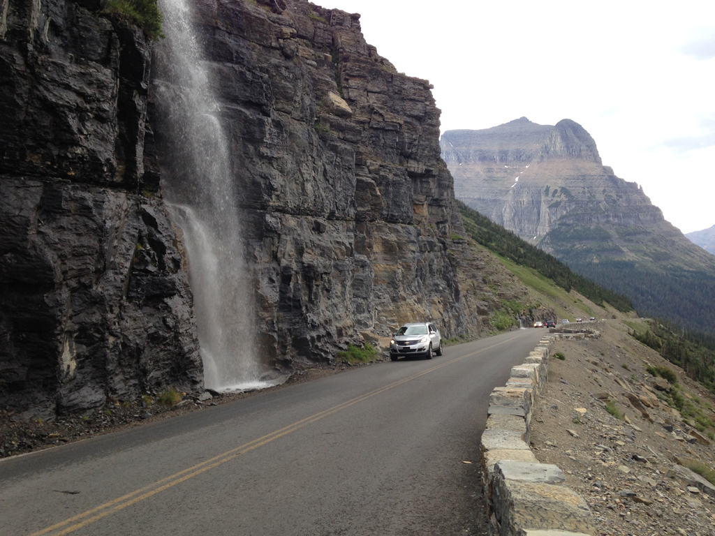 Going-to-the-Sun Road is a remarkable achievement, bisecting Glacier National Park for 50 miles through scenery that is both sweeping (grand vistas that rival any park anywhere) and weeping (water pours onto the road along the Weeping Wall). Among the waterfalls along the way are McDonald Falls (two miles west of Lake McDonald Lodge), Bird Woman Falls (which drops 500 feet), and Baring Falls (at the Sunrift Gorge Turnout). But if you truly want to appreciate the road, drive over Haystack Falls. Really, you're essentially driving over it. The falls pour down a nature-made staircase, then rush beneath the road (a small bridge, actually) before plummeting toward the valley below. Awesome.