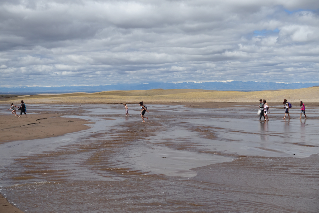 Crossing Medano Creek. Cool mountain-fed water that even has waves.