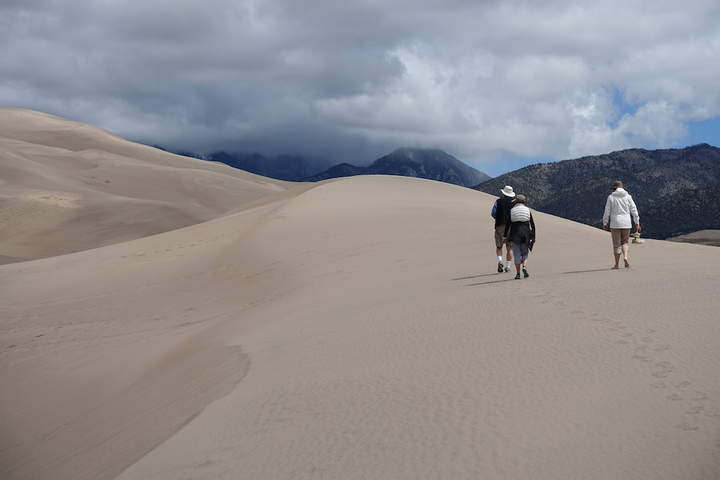 Scientists estimate that the dunes are relatively young at 440,000 years old. They were created when a huge inland lake (now the fertile San Luis Valley) dried up and the prevailing winds pushed sand against the rugged Sangre de Christo mountains. The visitor center is open year round and from the parking lot you walk out across Medano creek (usually flowing in spring and early summer) to the base of the dunes. After that, it's choose your own adventure.