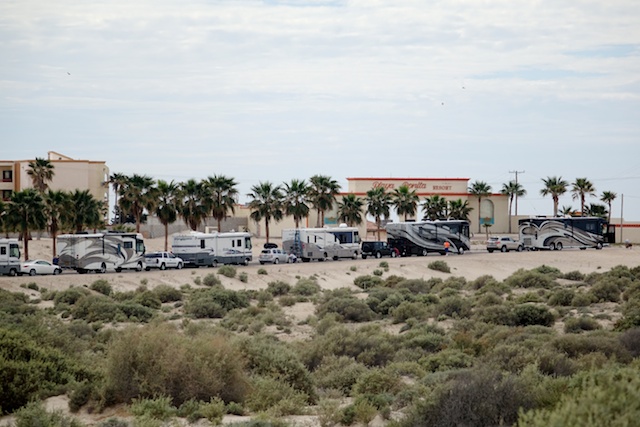 It took the better part of a day to caravan into Mexico, clear customs, and pull into our site at the Playa Bonita RV Park. The trip would have been faster but there were a few unplanned "speed bumps" including an actual speed bump that launched a small golf cart off the back of one rig's hitch and onto the road right after crossing into Mexico. Another rig developed a fuel line problem that was causing a loss of power. By traveling as a group, having two couples as event hosts, and all being connected with CB radios, what could have turned into bigger problems was nothing more than a short delay and everyone arrived as planned.