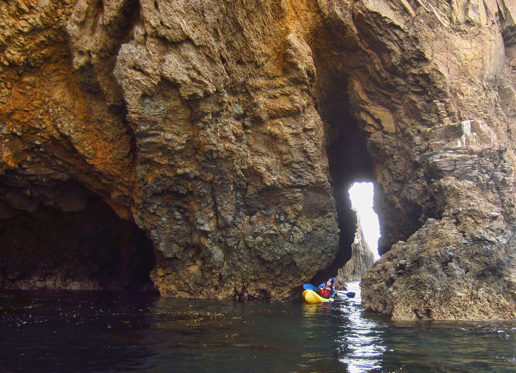 The Channel Islands Visitor Center stresses that "half the park is underwater." Although I won't have the chance to submerge, I did come to spend some time on the surface kayaking the sea caves. I booked a tour with Santa Barbara Adventures, a company that accommodates both visitors from the mainland, as well as campers on the island. They supply all gear including wetsuits, spray jackets, dry bags, and helmets (mandatory if you want to tour the caves.)