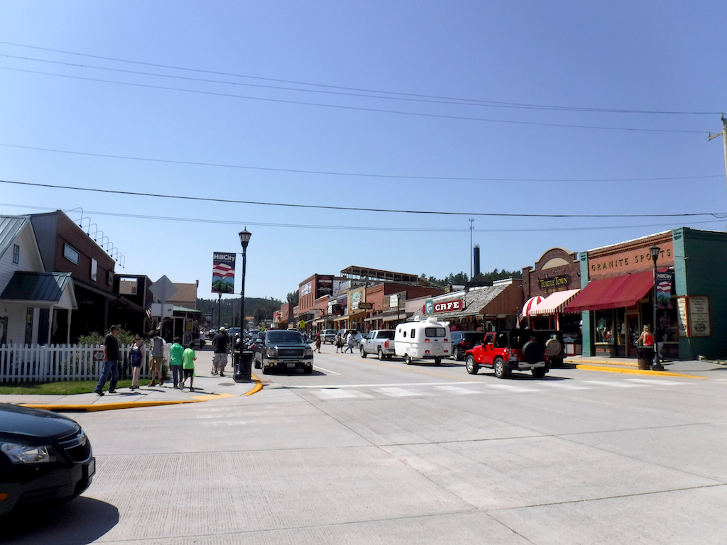 Busy streets of downtown Hill City.Hill City is a good central point to ride the trail in both north and south directions.