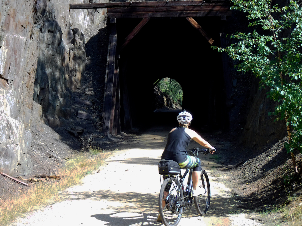 I'd recommend either an urban hybrid or mountain style bike with heavier tires. Lightweight road bikes would more than likely have tire problems. The railroad grades are no more than 4.5%, but before you think that's not much more than flat, be warned that some of the grades relentlessly climb for several miles before descending.
