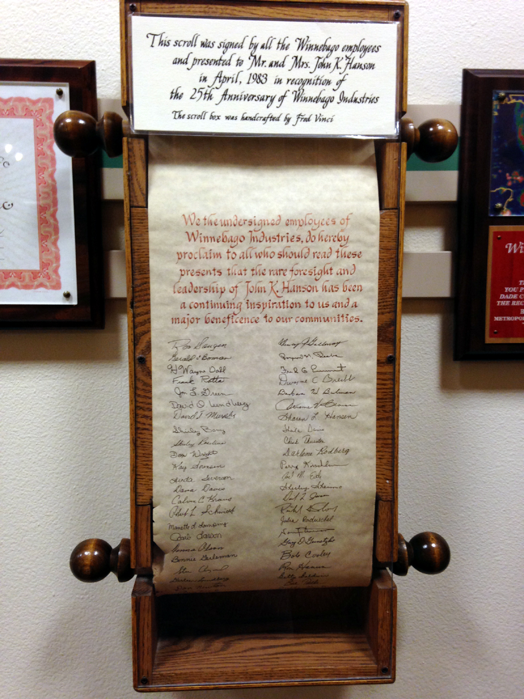 ... and family (that's a scroll for Hanson, signed by every Winnebago employee)...